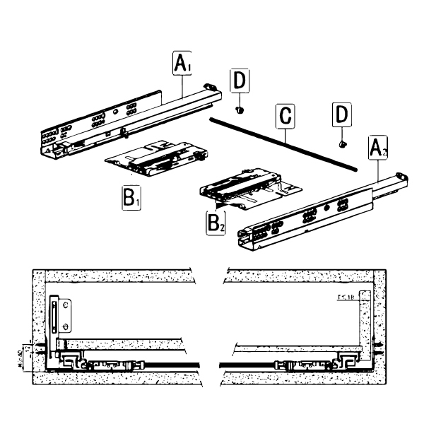 Направляющие скрытого типа UNIHOPPER 500мм 3D полного выдв. push-to-open с дов с синхронизатором 1м